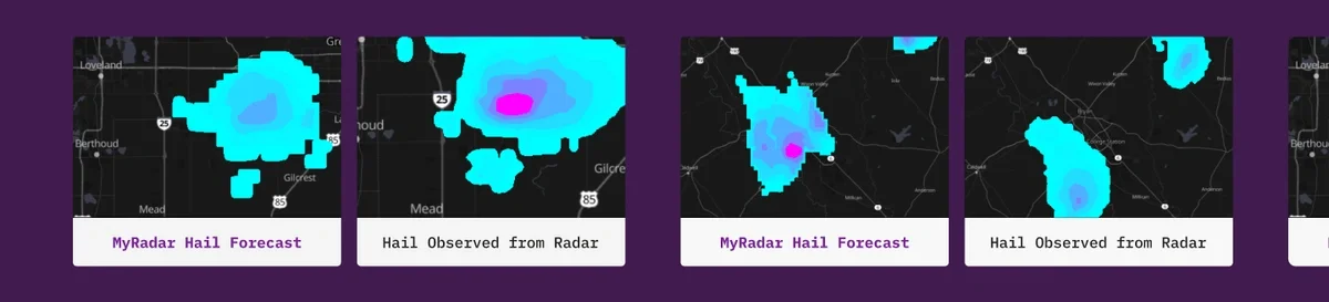 Deliver precise 18-hour hail forecasts for any selected location, updated every 15 minutes, allowing insurers and businesses to proactively prepare for potential claims.
